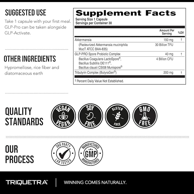 - Research-Backed Akkermansia Probiotic for Natural GLP-1 Pathway Support*: GLP-Pro supplies 30 billion TFU of pasteurized MucT Akkermansia muciniphila probiotic —the human-study dose shown to reinforce gut-barrier integrity and metabolic wellness.* During fermentation this postbiotic strain releases propionate and the P9 protein that nourish L-cells, helping maintain the gut-driven GLP-1 pathway behind balanced appetite cues and everyday metabolic balance.*