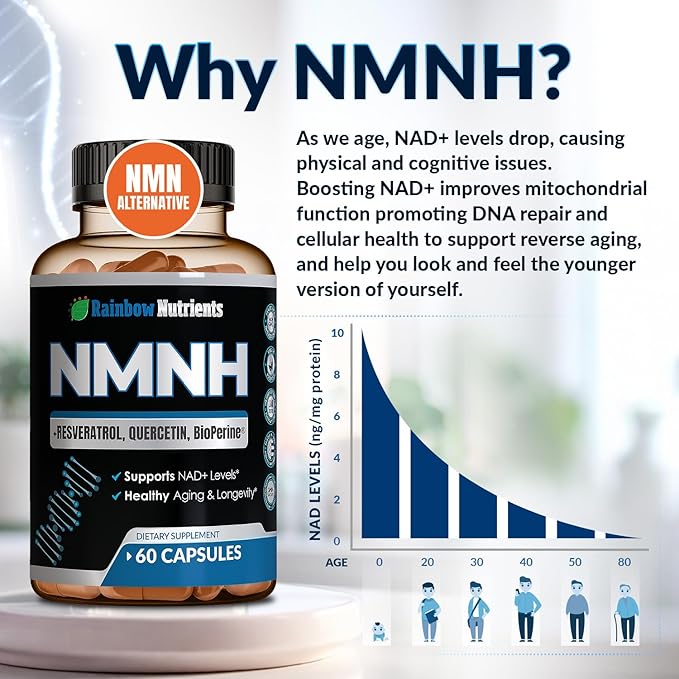 - 7,260MG PER SERVING – Next-Gen NMN ALTERNATIVE FOR NAD+ SUPPORT: Experience the cutting edge of cellular health with NMNH (Dihydronicotinamide Mononucleotide), a potent NMN alternative scientifically designed to boost NAD+ levels for enhanced mitochondrial function, cellular repair, energy, and longevity.