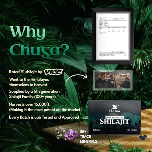 - Premium Quality: Chuga's shilajit is harvested in India from the Himalayan mountain range. It is gathered at 16,000+ feet, making it Grade A shilajit. The fulvic and humic acid content within shilajit increases in relation to the height it is harvested from. This makes our shilajit extremely potent and nutrient dense compared to most shilajit that is harvested at 4,000-6,000 feet.