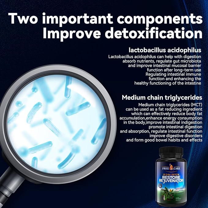- FAST DIGESTIVE CLEANSE & PROBIOTICS: FreeCare's detox pills support digestion and a healthy gut with lactobacillus acidophilus, a potent probiotic for men and women to relieve stomach bloating.
