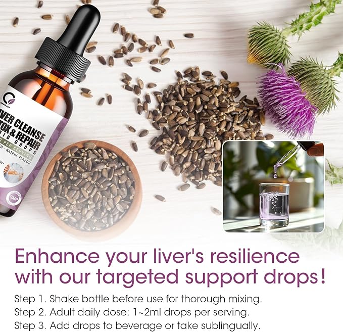 - Milk Thistle Liver Detox : Our liver health support liquid drops is sugar-free and comes in a 4 fl oz bottle. Compared to Milk Thistle capsules or tea, our concentrated Milk Thistle liquid supplement may integrate more seamlessly into your daily routine. Maintaining health doesn't have to be complicated – simply take 1-2 ml liver supplement daily, which contains powerful benefits and is convenient to carry with you