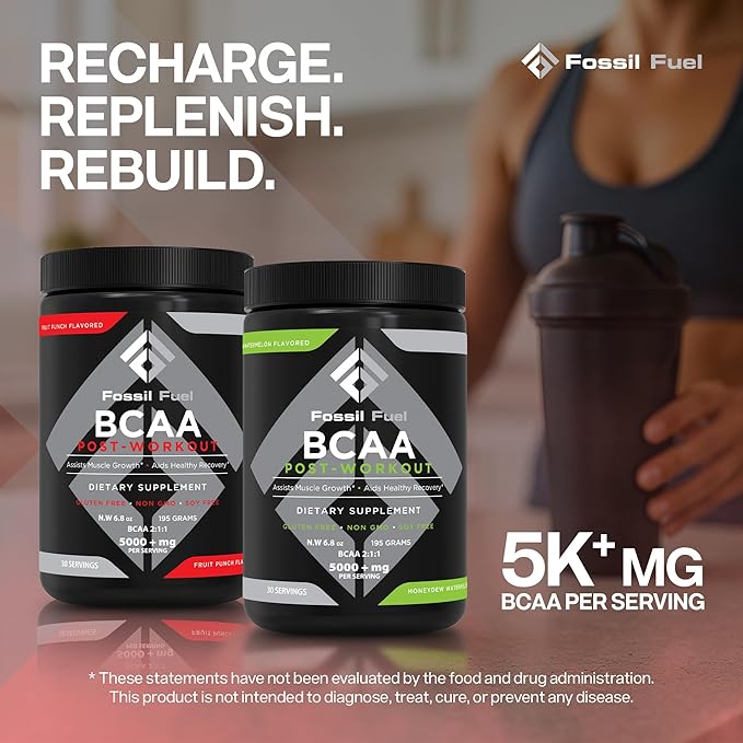 Fossil Fuel BCAA Sugar-Free Post-Workout Powder with BCAA’s, Glutamine, Vitamin B6 Essential Amino Acids for After Workout Muscle Recovery, Endurance and Hydration Fruit Punch (30 Servings)