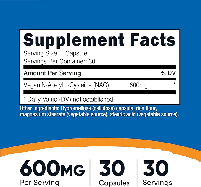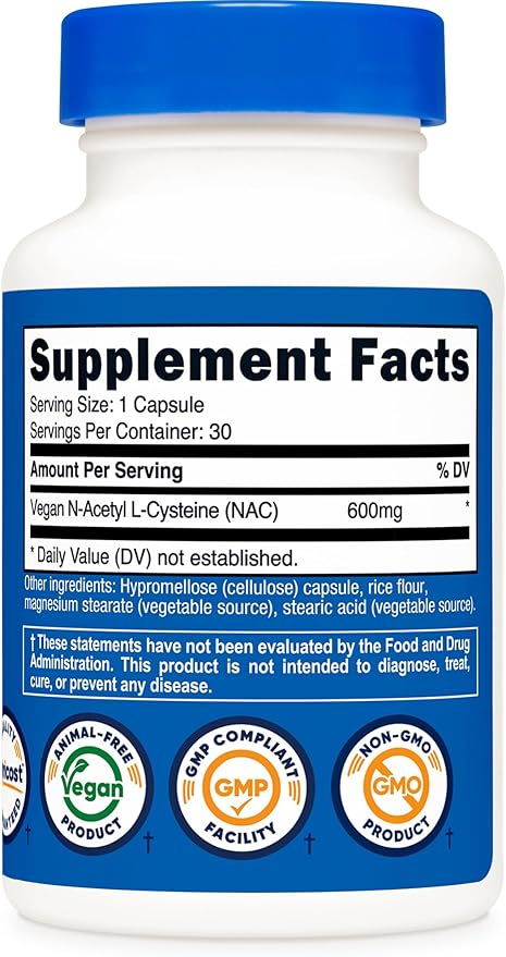 Nutricost N-Acetyl L-Cysteine (NAC) 600mg, 30 Vegan Capsules - GMO Free, Gluten Free, Vegetarian Caps
