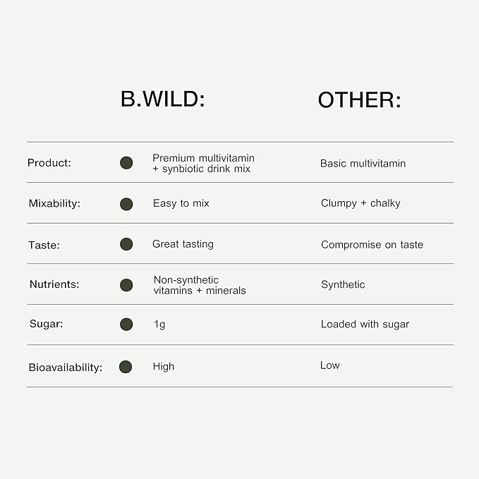 - ALLERGEN AND VEGAN FRIENDLY - B.Wild is Non-GMO, gluten free, dairy free, soy free, keto and made without: nuts, tree nuts, peanuts, animal byproducts or artificial flavors, colors and sweeteners.