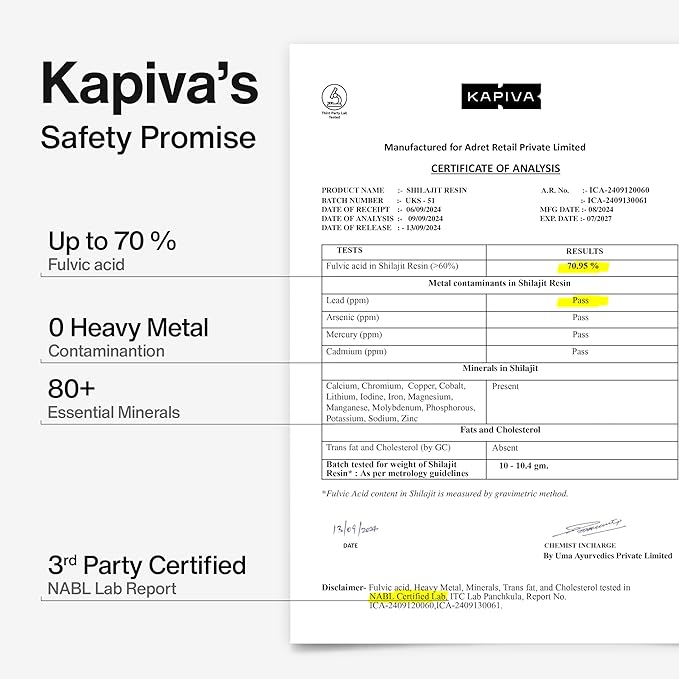 - ✅ LAB-TESTED, EASY TO USE & LONG-LASTING BENEFITS – Coming with third party certified NABL lab report, our natual shilajit resin is free from heavy metal contamination. It comes GMP certified, vegan and gluten free.