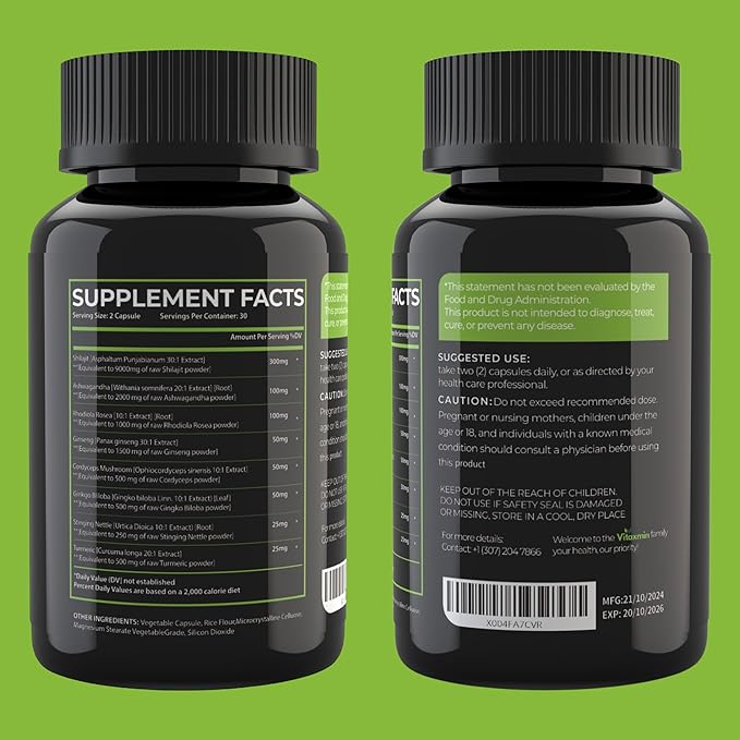 - Premium Shilajit Ashwagandha Testosterone Booster - Our Vitaxmin pure himalayan shilajit capsules combine organic ashwagandha KSM-66 with panax ginseng for men to support natural testosterone levels, libido booster benefits, and sexual health. Superior to betteralt shilajit, vital herbs shilajit, or basic shilajit ultra formulations, delivering comprehensive mens sexual health supplements support.