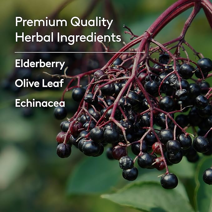 - Supports Seasonal Immune Wellness – Triple-action blend of elderberry, echinacea, and olive leaf helps support your immune system during seasonal changes, or when you need it most. With a naturally delicious wild berry flavor.