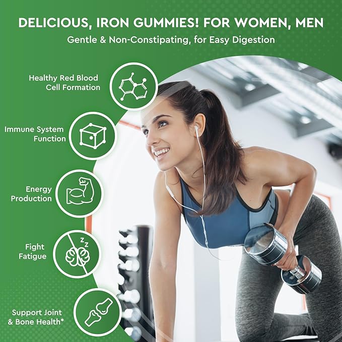 - A HOLISTIC POWERHOUSE: Our iron gummies for women can help with anemia and increase hemoglobin. These delicious chewable iron supplement for women help reduce fatigue, improve concentration, lessen bruising, boost immunity and better your sleep, are ideal for Body Shape Regulation, anemia, health-conscious men, pregnant, prenatal & postnatal women, or anyone with low iron levels