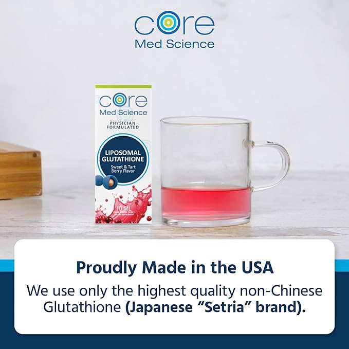 Core Med Science Liposomal Glutathione Supplement, Sweet & Tart Berry - Glutathione Drink Mix for Detox Support - Antioxidant Supplement for Energy, Brain Health, Skin & Liver Health - 30 Pack