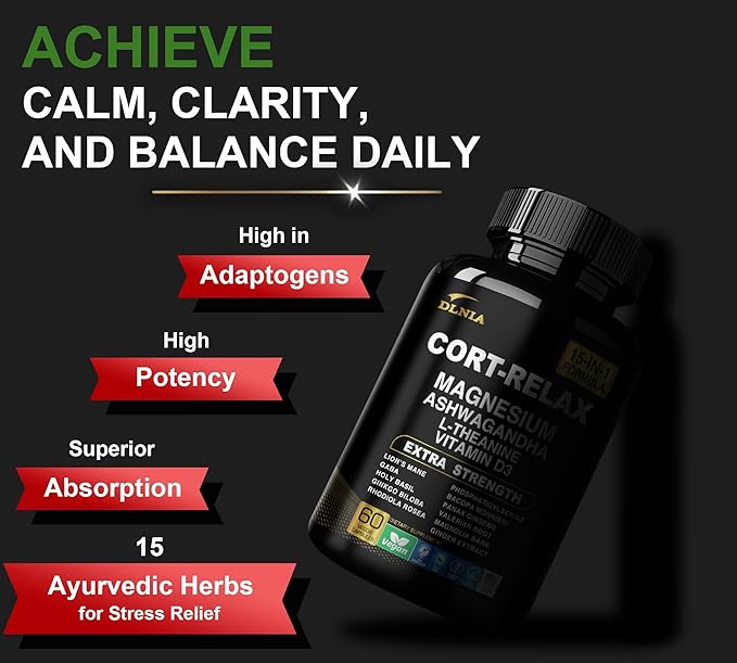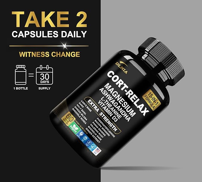 - 15-in-1 Extra Strength Supplement: Experience a burst of relaxation & clarity with our unique magnesium complex cortisol supplements for women and men with, L-Theanine, Ashwagandha, Phosphatidylserine, & 12+ other essential minerals blend. This cortisol reducer/manager fits perfectly into your busy lifestyle helping you in relaxation, resilience, calm and overall wellness making it the best supplement to lower cortisol