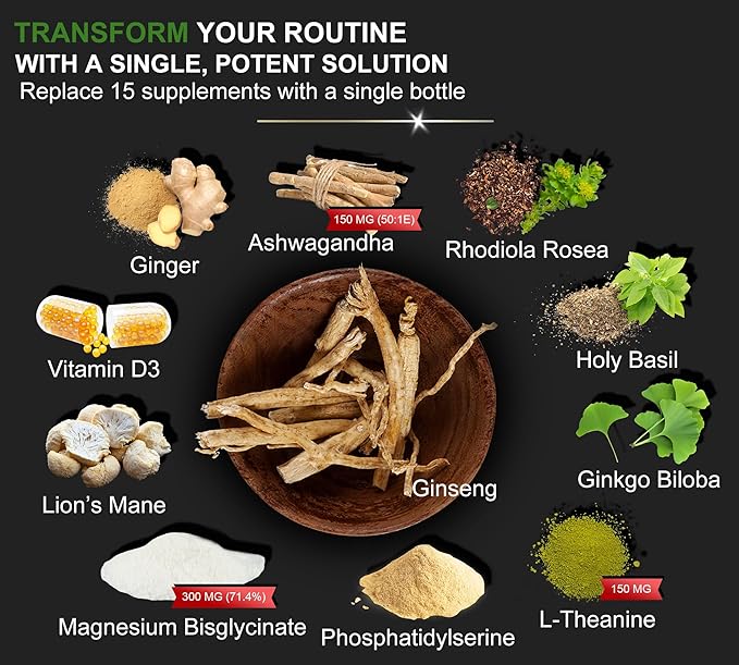 - Holistic Cortisol Support: Our all-in-one cortisol manager formula harnesses the power of adaptogens like Lions Mane, Holy Basil & Rhodiola Rosea to support your body's natural cortisol regulation and adrenal health. With added GABA & Phosphatidylserine, you can tackle daily tasks with ease, feeling relaxed & focused throughout the day and promoting restful sleep at night