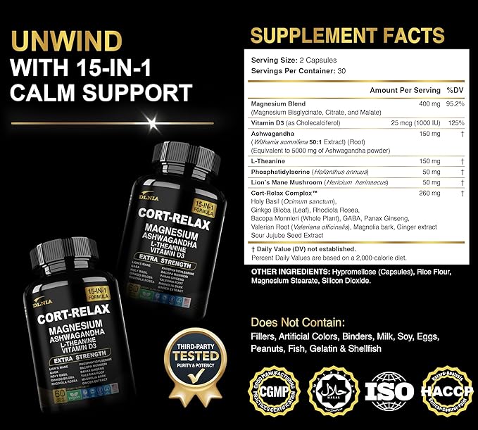 - Pure Ingredients with Satisfaction Guarantee: DLNIA cortisol detox Magnesium Pills undergo rigorous third-party lab testing to ensure purity, potency, & safety. We use only premium, ethically sourced, non-GMO, plant-based ingredients manufactured in CGMP facilities. Our Magnesium glycinate supplement is free from any additives & preservatives, providing you with the wellness & strength you deserve
