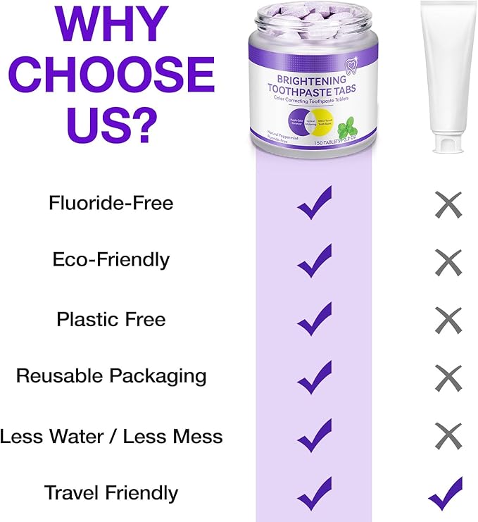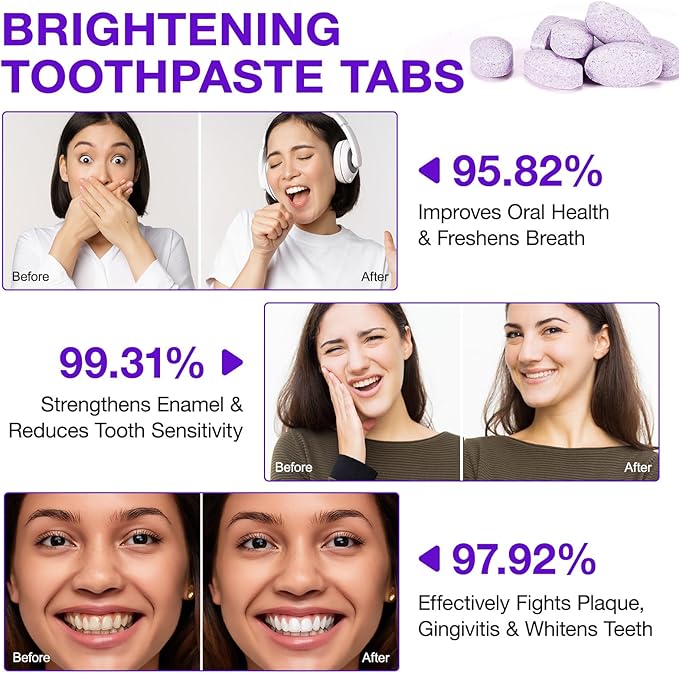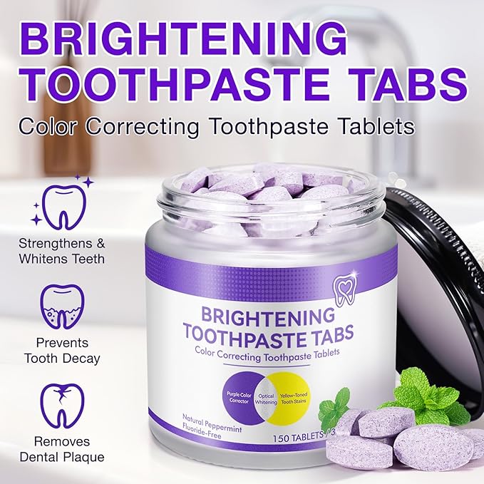 - 【Color Corrector】Formulated with advanced color correcting technology, our purple toothpaste tablets help to whiten teeth and say goodbye to yellow teeth for a bright and confidence smile.