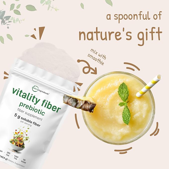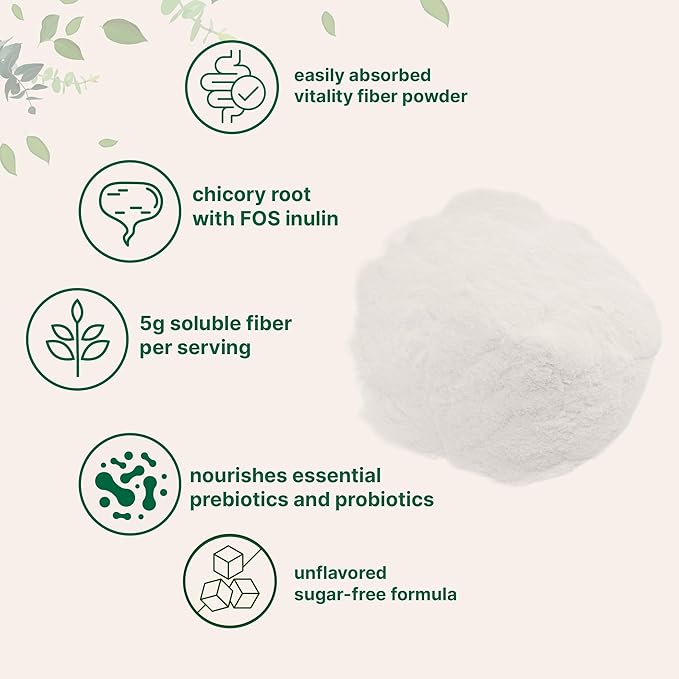- Micro Ingredients offers high bioavailable Vitality Fiber Powder, a daily prebiotic fiber supplement that provides 5g of soluble fiber per serving, 2-in-1 with chicory root inulin and FOS (Fructooligosaccharides).