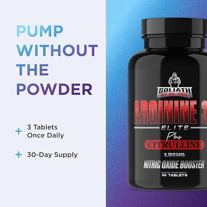 Dr. Emil - Elite L Arginine (3150mg) + L-Citrulline Highest Dose - Nitric Oxide Supplement for Vascularity, Endurance and Heart Health (AAKG and HCL) - 90 Tablets