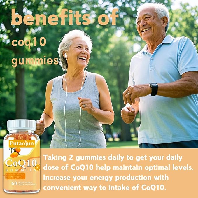 - NATURAL & DELICIOUS & SAFE: We're proud to offer non-GMO, gluten-free gummies, which makes them suitable for almost any lifestyle and fueling your daily vitality. The gummies are also easy to chew with a natural orange flavor. Putaojun Coq10 gummies making the muscles contract effectively and maintain the exercise.