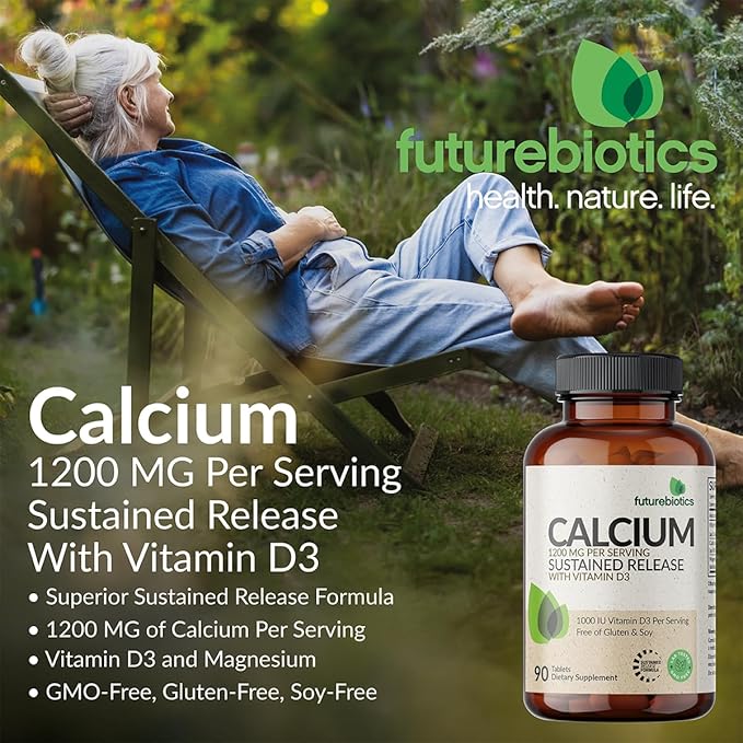 - Sustained Release Calcium Tablets: Futurebiotics Calcium Sustained Release provides 1200 MG of Calcium per serving plus Vitamin D3 and Magnesium. Our Sustained Release formula slowly releases over time to provide a steady balance of Calcium throughout the day.*