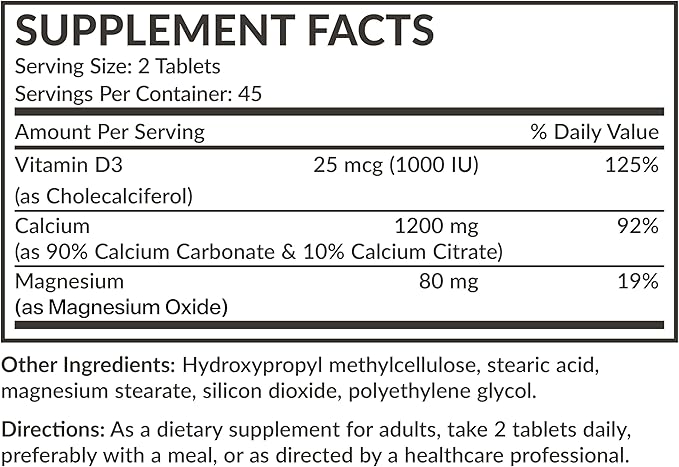 Futurebiotics Calcium 1200 MG Per Serving Sustained Release with Vitamin D3 1000 IU Per Serving Non-GMO, 90 Vegetarian Tablets