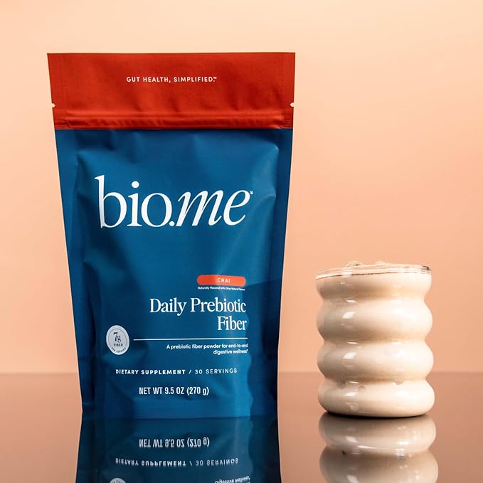 - DIGESTIVE SUPPORT: Take good care of your digestive health with Bio.me Daily Prebiotic Fiber supplement. This fiber powder combines two clinically-researched prebiotics, delivering 7g of soluble fiber per serving to support a balanced microbiome without causing bloating, gas, or cramping. This fiber supplement powder is perfect for both men and women and ensures gentle, effective relief when used daily.