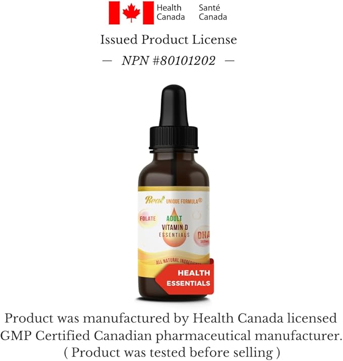Adults Health Essentials Drops - Liquid DHA Omega 3, Natural Vitamin D3 1000 IU, Folate Supplement, Supports Heart, Brain, Eyes & Joint Health Supplement for The Whole Family