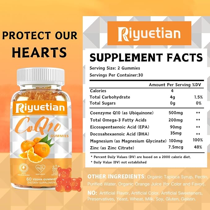 - DELICIOUS & CONVENIENT – Riyuetian’s gummies designed with portable packaging, which is easy to carry and store. Whether at home, office or outdoor traveling, we can enjoy this delicious CoQ10 gummies anytime and anywhere.