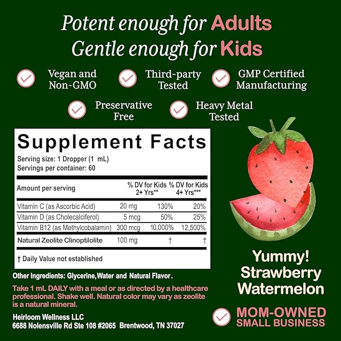 - Mom-Formulated & Trusted: Designed by a wellness-focused mom to provide clean, natural detox for kids with liquid zeolite, B12, vitamin C & D3 for immune health and energy.*
