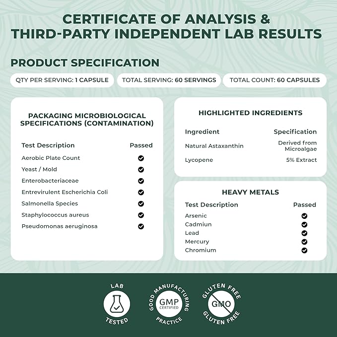 - PREMIUM QUALITY: Our non-GMO Astaxanthin and Lycopene supplements for men and women are manufactured in the USA from non-GMO globally sourced ingredients, lab tested to ensure maximum quality.