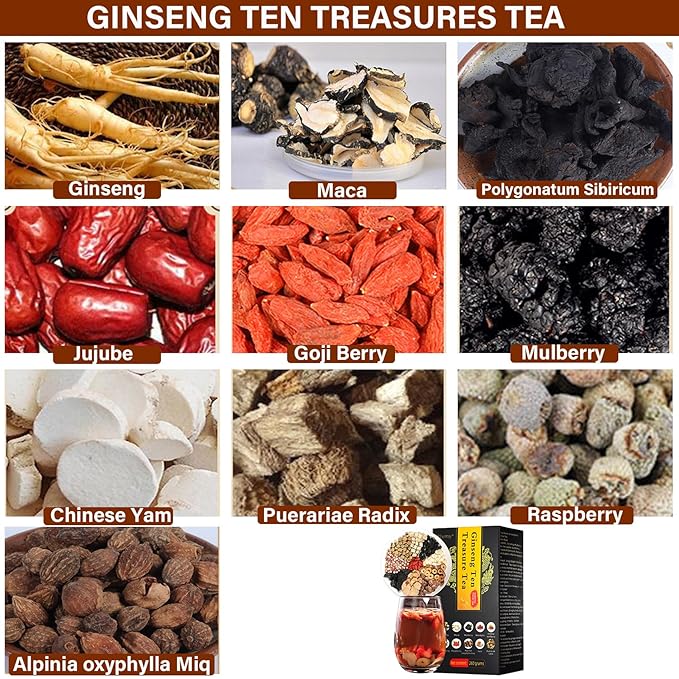 - 【Ten Natural Herbs】Carefully selected raw materials such as Ginseng, Mulberry, Maca, Yam, Jujube, Goji Berry, Polygonatum Sibiricum,etc, scientifically proportioned, naturally dried, and formulated without any additives.