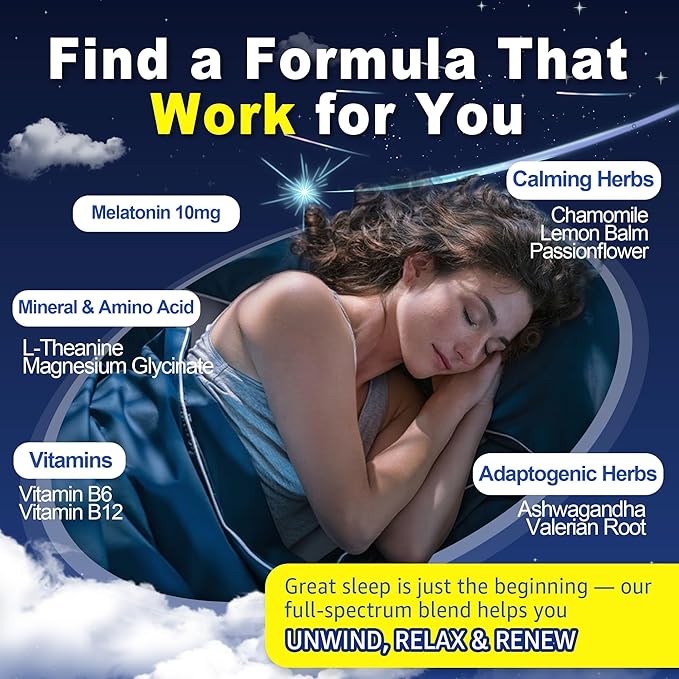 - [Rest Easy, Wake Refreshed] Tired of toss and turn and want to drift off quicker? Tired of morning fog and want to wake refreshed? That’s why we crafted this formula with vitamins, minerals, botanicals and 10mg melatonin — specially formulated to ease your mind and help you have a deep, restorative rest so you feel renewed each morning.
