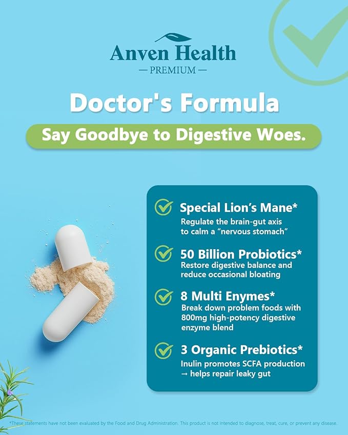 - Synergistic Quad-action Wellness System -- Combines 8 digestive enzymes for nutrient breakdown, 50 Billion CFU probiotics to restore healthy flora, 3 targeted prebiotics to fuel the microbiome, and restorative herbal nutrients to strengthen the gut barrier—scientifically designed for more effective relief from bloating, gas, and digestive for men and women.