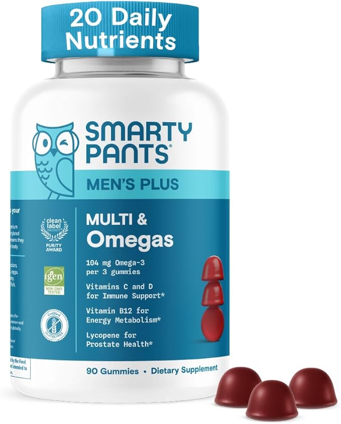 - PREMIUM, SCIENCE-BACKED GUMMY MULTIVITAMIN SUPPLEMENTS FOR MEN: SmartyPants Men’s Plus Multi & Omegas is specifically formulated to help fill average nutrient gaps men may have.