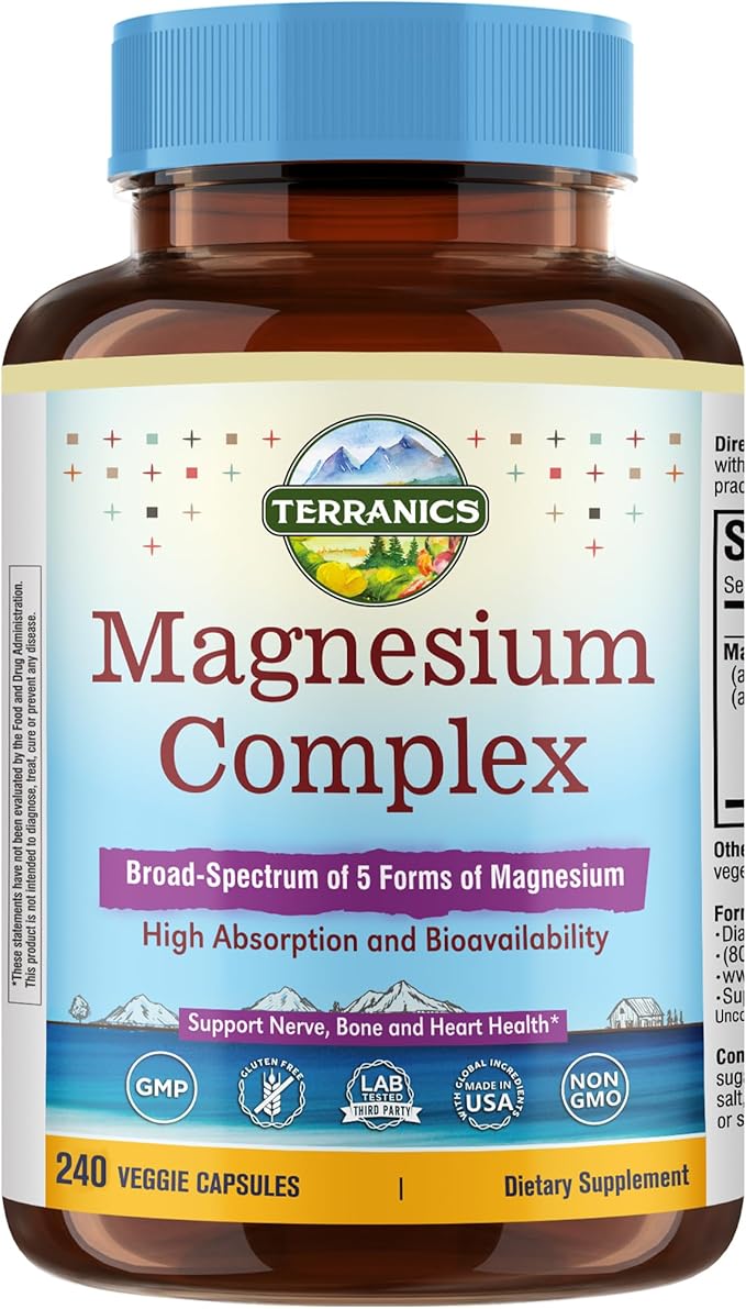 - Five Premium Chelated Magnesium Forms-Magnesium Glycinate, Citrate, Malate, Aspartate & Gluconate*: Terranics Magnesium Complex champions a comprehensive approach to magnesium supplementation with five chelated forms. These exceptional elemental magnesium sources are carefully designed for high absorption by your body. Our magnesium complex capsules can support your health and wellness goals.