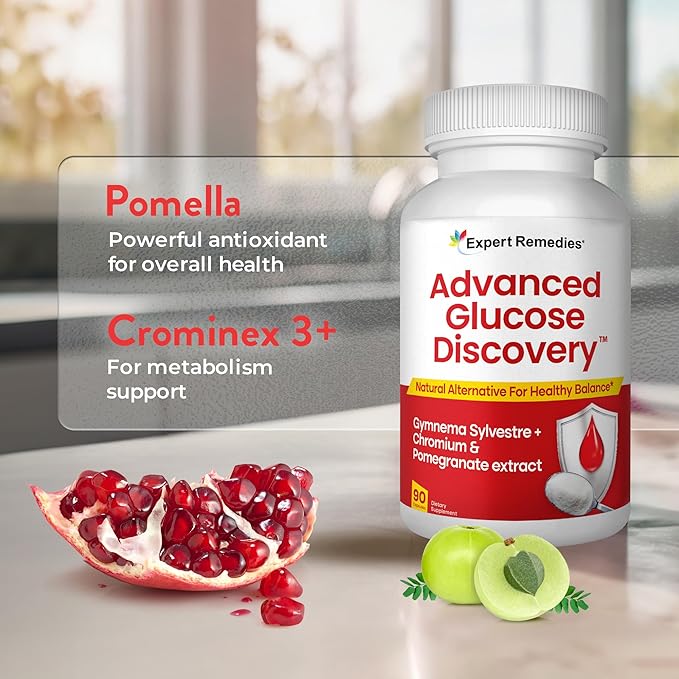 Advanced Glucose Discovery for Sugar Watchers, with Gymnema Sylvestre, Patented Pomegranate Supplement, Crominex 3+, for Glucose Metabolism Wellness - All Natural, Non-GMO - 90 Vegan Capsules