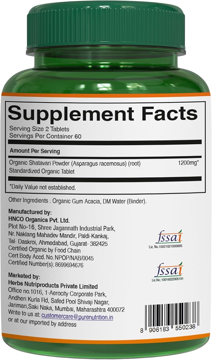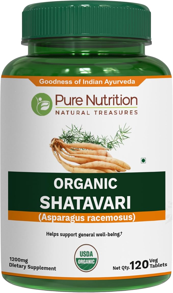 Pure Nutrition Organic Shatavari Tablets - 1200mg | 120 Count | USDA Organic | Promotes hormonal Balance & Female Reproductive Health | Non-GMO | Gluten-Free