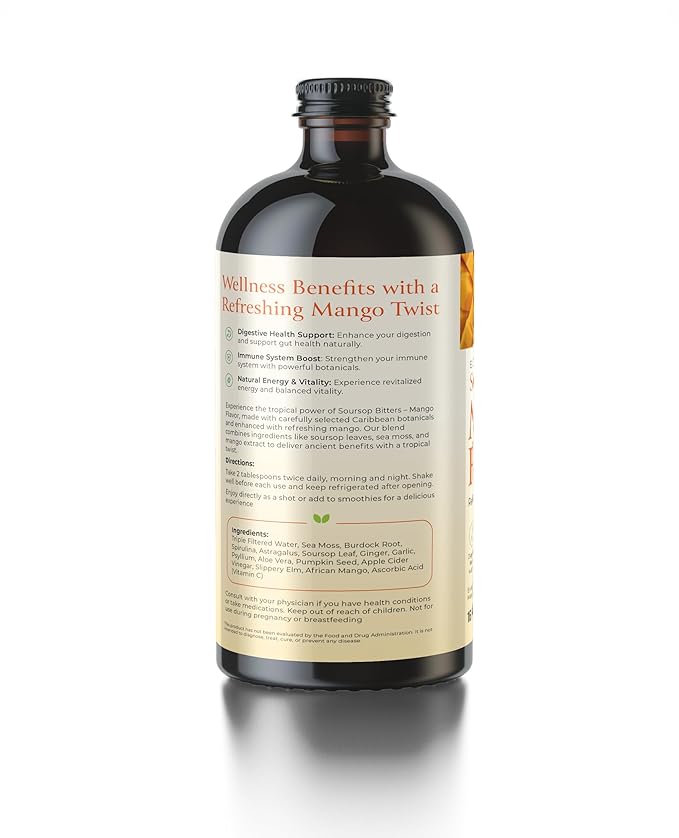 - CONSISTENT USE FOR BEST RESULTS: For optimal wellness benefits and powerful effects make our premium soursop bitters liquid mango flavor a regular part of your daily routine. Consistent use is essential to fully experience the powerful effects. Incorporate it daily to enjoy the full range of benefits.