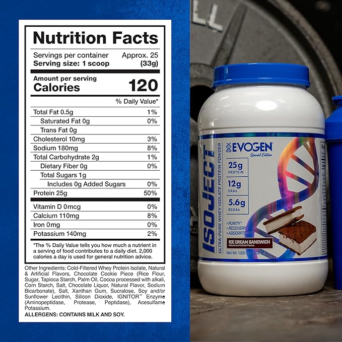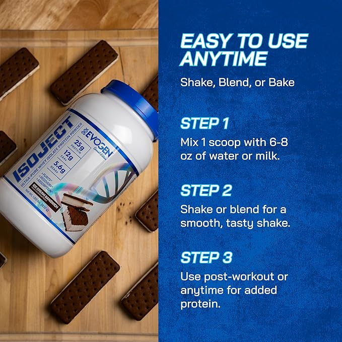 Evogen Isoject - Whey Protein Isolate | Ultra-Pure Whey Protein Powder with Ignitor Enzymes, BCAAs, and EAAs | Enhanced Absorption & Recovery | Ice Cream Sandwich | 25 Servings