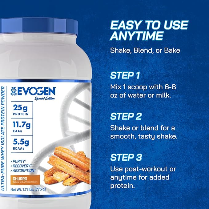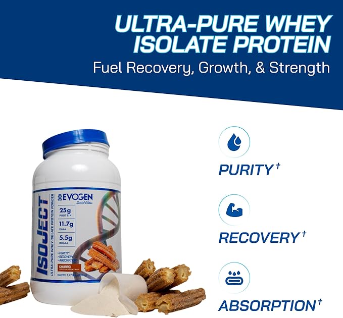 Evogen Isoject - Whey Protein Isolate | Ultra-Pure Whey Protein Powder with Ignitor Enzymes, BCAAs, and EAAs | Enhanced Absorption & Recovery | Churro | 25 Servings