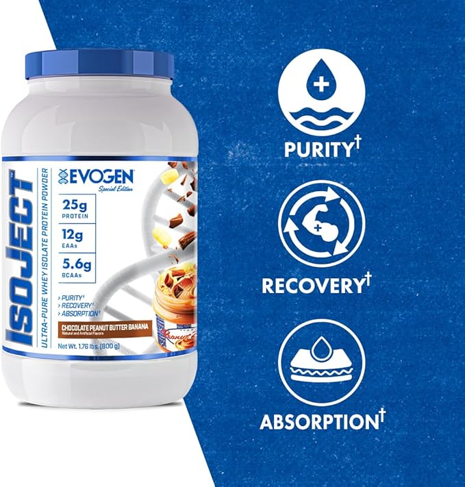 Evogen Isoject - Whey Protein Isolate | Ultra-Pure Whey Protein Powder with Ignitor Enzymes, BCAAs, and EAAs | Enhanced Absorption & Recovery | Chocolate Peanut Butter Banana | 25 Servings