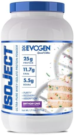 Evogen Isoject - Whey Protein Isolate | Ultra-Pure Whey Protein Powder with Ignitor Enzymes, BCAAs, and EAAs | Enhanced Absorption & Recovery | Birthday Cake | 25 Servings