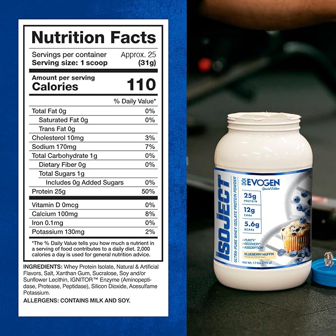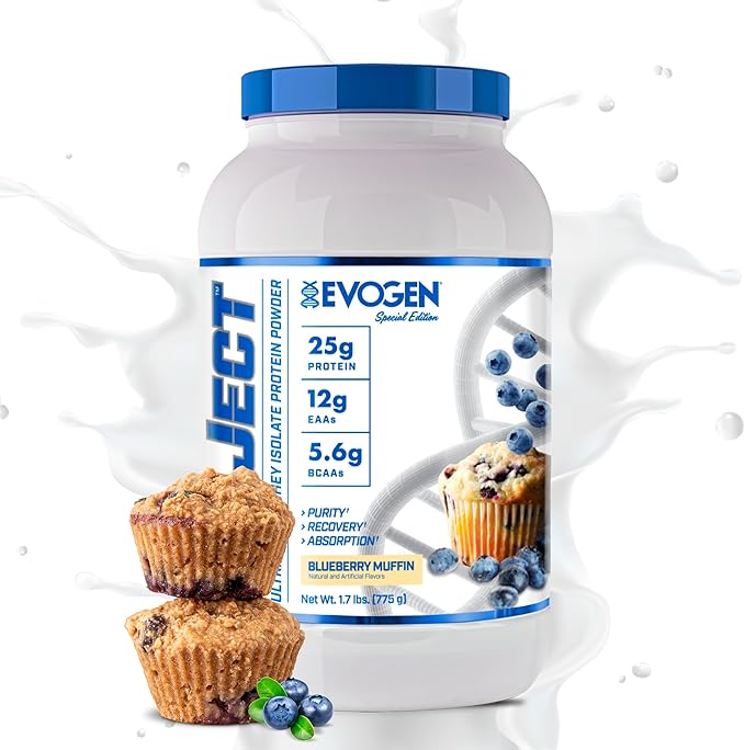 Evogen Isoject - Whey Protein Isolate | Ultra-Pure Whey Protein Powder with Ignitor Enzymes, BCAAs, and EAAs | Enhanced Absorption & Recovery | Blueberry Muffin | 25 Servings
