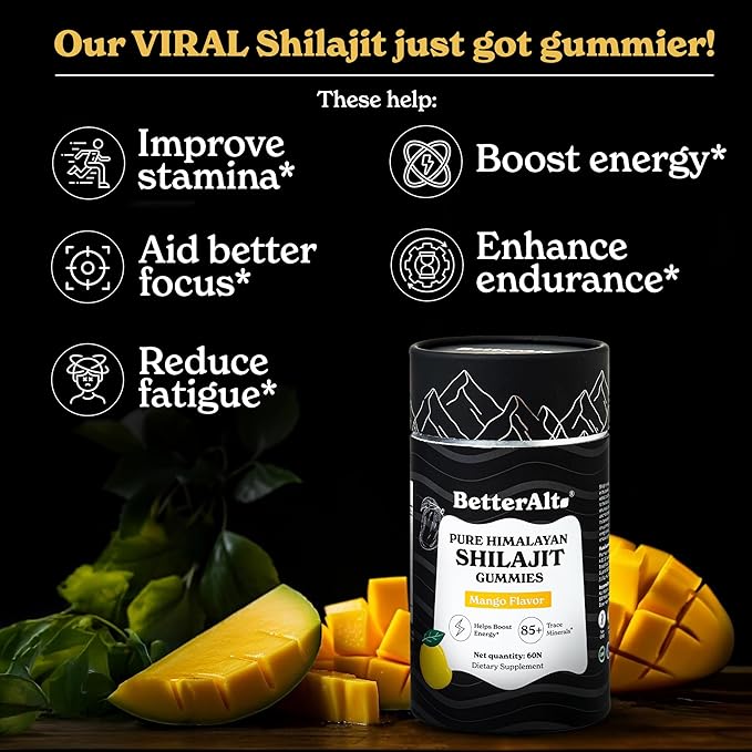 - Energy Boost & Immune Support: Our pure himalayan shilajit mango gummies are meticulously crafted with over 85 trace minerals that work synergistically to naturally enhance your energy levels and fortify your immune system. Say goodbye to fatigue and hello to sustained energy throughout your day.
