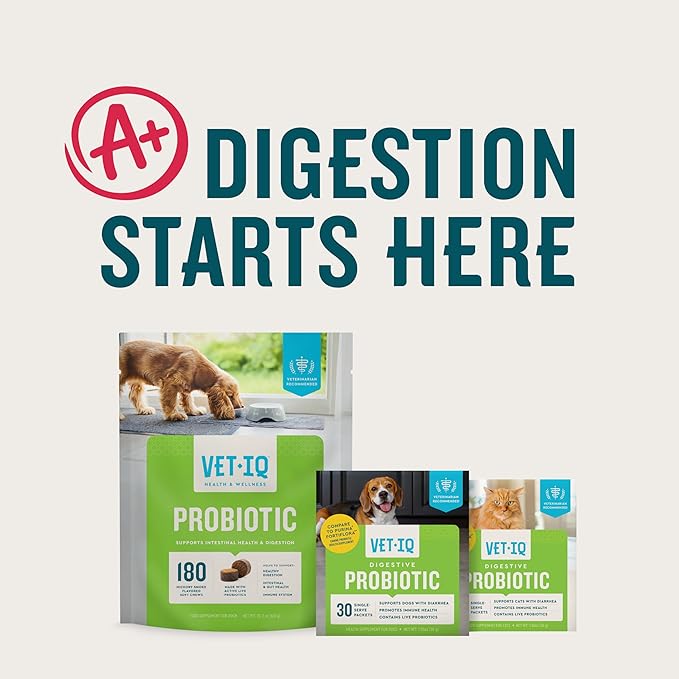 - Compare to the Leading Brand: VetIQ Digestive Probiotic for Dogs is made with an active probiotic comparable to Purina Fortiflora, but at a price you’ll love; Delivers trusted, high-quality digestive support you can feel confident giving to your dog