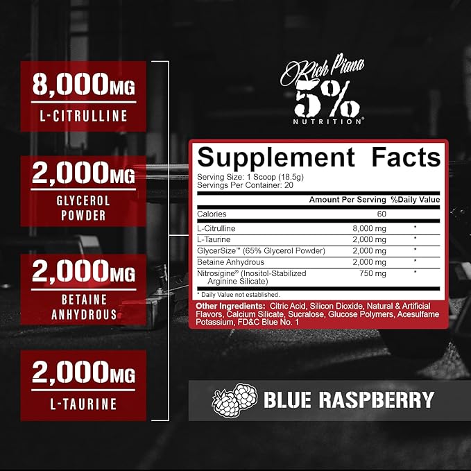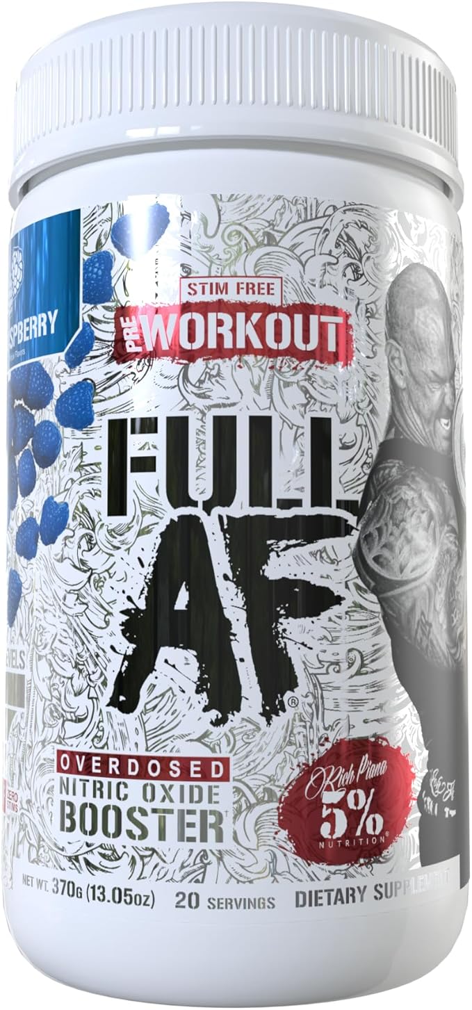 5% Nutrition FullAF Pre-Workout | Stim-Free with Massive Pumps | L-Citrulline, L-Taurine, Nitrosigine, GlycerSize | 13.05 oz (Blue Raspberry)