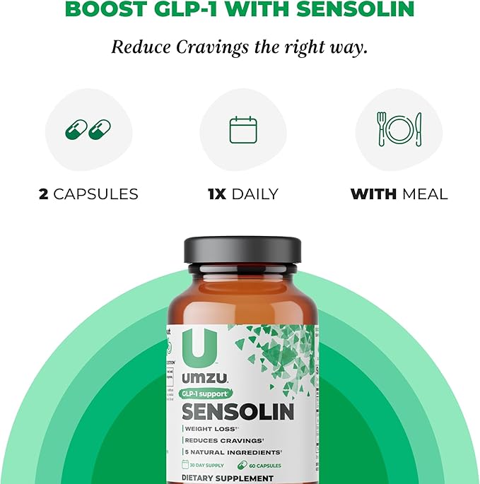 UMZU Sensolin GLP-1 Metabolic Support Supplement, Boost GLP-1 Production, Reduce Food Noise, Balance Mood, Clinically Advanced Berberine, Ceylon Cinnamon, Chromium (60 Capsule | 30 Day Supply)