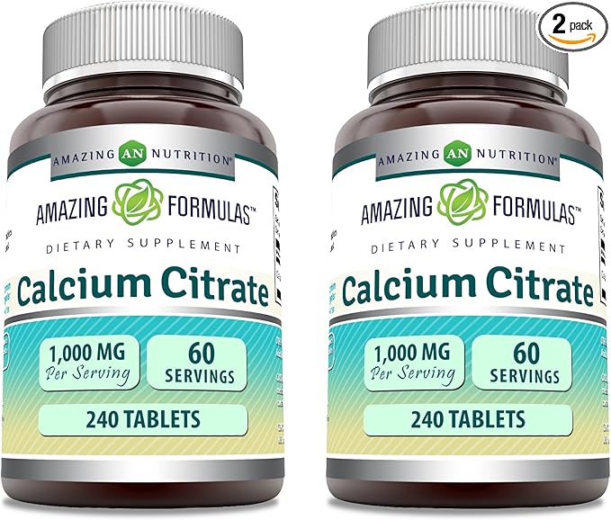 Amazing Formulas Calcium Citrate Supplement | 1000 Mg | Tablets | Non-GMO | Gluten Free | Made in USA (2 Pack, 240 Count)