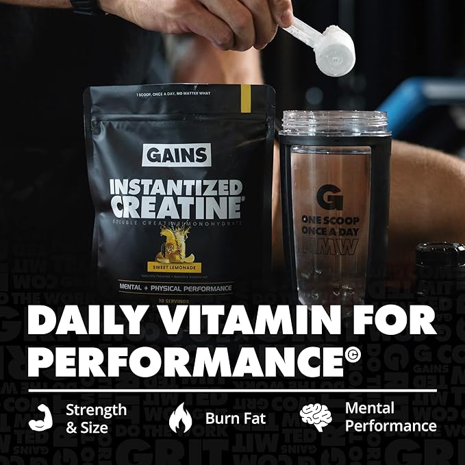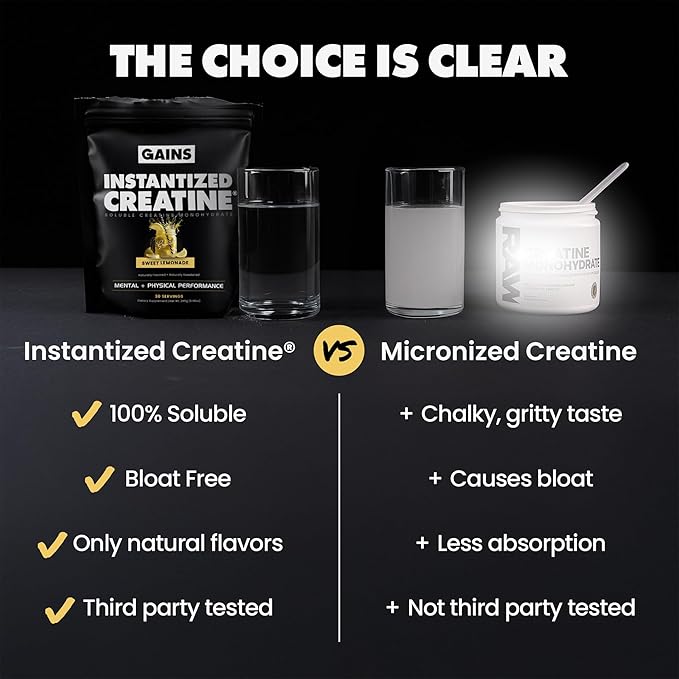 Gains in Bulk Instantized Creatine Monohydrate for Women and Men, Soluble Pre Workout Powder, Supports Muscle Building, Strength and Performance, Bodybuilding Supplements, Sweet Lemonade, 30 Servings