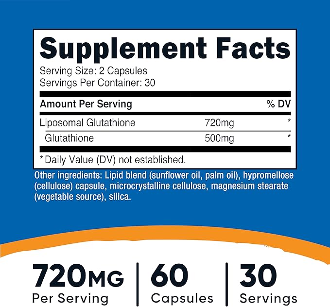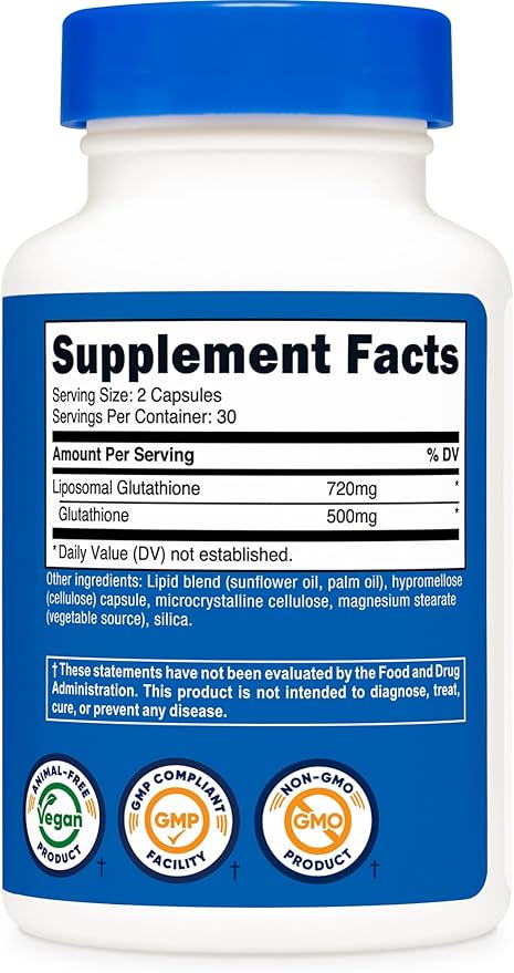 Nutricost Liposomal Glutathione Supplement 60 Capsules, 720 mg Per Serving - Vegan, GMO-Free, 30 Servings