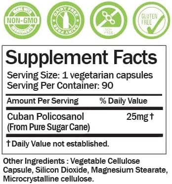 Cuban Policosanol 25mg, 90 Vegetable Capsules (Pack of 2)