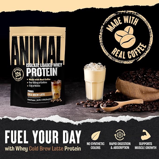 - Premium Instant Coffee Whey Protein Isolate - Loaded with the highest quality protein sources, Animal Whey delivers a potent punch of 22 grams of protein per serving. This super coffee is fast absorbing with high bioavailability to support muscle growth and recovery