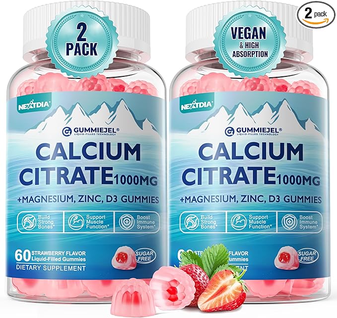 - CALCIUM CITRATE LIQUID FILLED GUMMIES: Why choose our calcium citrate gummies? Calcium citrate is more easily absorbed than calcium carbonate. Our calcium supplement 1000mg features a gelatin-free chewy outer layer, specially created with advanced GummieJel technology, inter layer encapsulate vitamins and minerals (Like Calcium, Magnesium, Vitamin D3) that are sensitive to temperature/pH in the center to ensure potency, stability, and maximize optimized absorption and bioavailability.